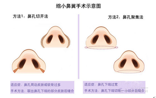 缩小鼻翼的方法有两种:内切法和外切法 (方法一),方法二基本淘汰