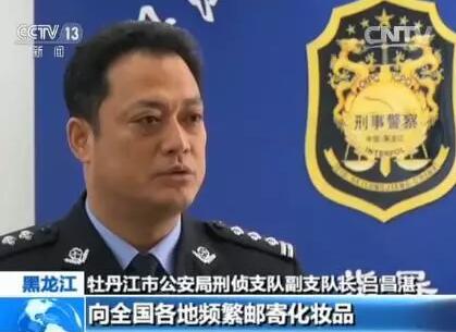 牡丹江市公安局刑事侦查支队副支队长吕昌湛:我们在东宁市找到了犯罪嫌疑人李某,通过我们的侦查,李某是通过快递向全国各地频繁邮寄化妆品,但李某没有正当的职业,没有从事过化妆品、美容类的这些职业。