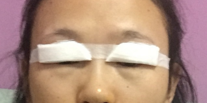 第五天的时候肿胀都还好,就是睁眼时异物感很强,我记得医生跟我说过,以后睁大眼睛的时候不要挑眉,那样会很丑的。我试了几次,发现自己再也不用额头的肌肉来睁大眼了,开心啊,因为不会有抬头纹啦!也可以瞪大眼睛了!周围同事都说我恢复的很快,很自然,我还是每天早上、晚上都用生理盐水清理伤口,每次碰到的时候还是有点疼的,但也都能接受。