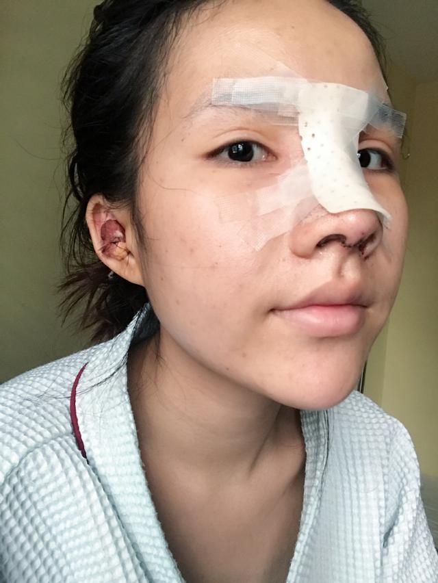 想做鼻子很久很久了,一直在网上关注了很多医院,也看了很多案例,终于下定决心做了,做的是膨体+耳软骨垫鼻尖+鼻小柱延长,现在还没有看到终的结果,因为包着纱布,做的是全麻,所以也不是很清楚过程,看现在的形状还不能确定,因为我想要的是欧美风,目前也只能等待~
